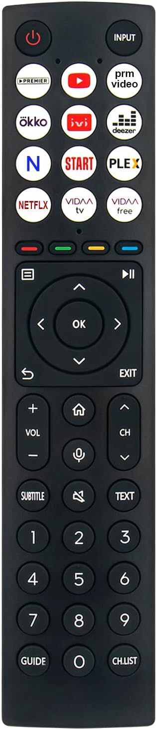 Télécommande compatible avec Hisense Smart TV VIDAA LCD LED UHD TV 55E7HQ 50E77HQ 55E77HQ 55U8HQ 65U7HQ Remplacement du contrôleur avec PrimeVideo NETFLIX boutons, aucune configuration nécessaire