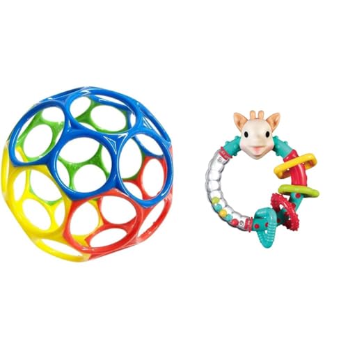 Bright Starts, Oball Classic, balle flexible et facile à manipuler, jouet d'activité sensorielle pour les enfants de tous âges & Sophie la Girafe - Hochet Bébé Bleu