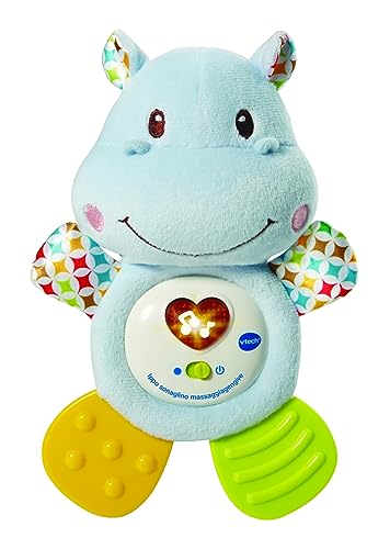 VTech Hippo, hochet de massage des gencives, hochet pour bébé avec bouton lumineux, idéal pendant la dentition, jeu bébé avec 10 mélodies et 3 chansons, langue italienne, piles incluses, 0-24 mois