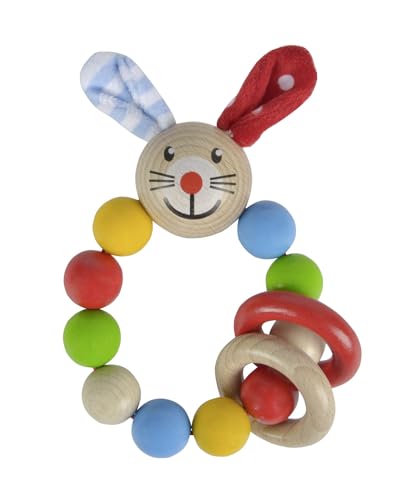 Eichhorn - Hochet - Bébé - Lapin avec 2 Anneaux - Bois/Peluche - Multicolore - 3 mois à 2 ans