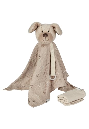 Sterntaler Träumli Chien Lucky Doudou avec Attache-tétine - Doudou avec hochet pour bébé et Enfant - pour câliner et Attraper - en Mousseline - Sable