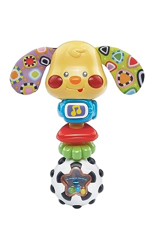 VTech - Chant' Toutou Rose, Peluche Chien Interactive, Hochet Bébé, Éveil Musical, Jouet Poussette, Siège Auto, Berceau et Parc Bébé, Cadeau de Naissance Bébé Dès 3 Mois - Contenu en Français