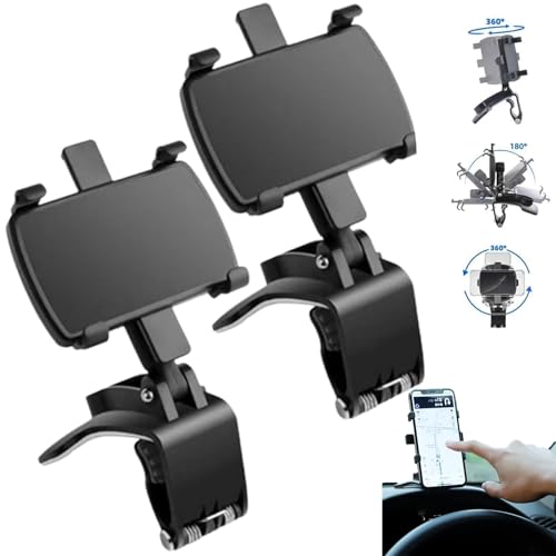 GUSHE Fortcom Car Phone Holder, Support de téléphone pour Voiture Tableau de Bord, Réglable Support Telephone Voiture Pince, 360 degrés de Rotation, Support de téléphone Portable Automatique