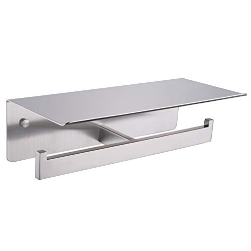 Apl-8912g WC SUS304 en Acier Inoxydable Double Papier Tissue Holder avec téléphone Portable étagère de Rangement, Nickel brossé