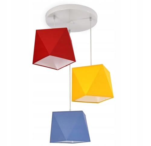 FKL DESIGN Home Deco Lampe suspendue lampe pour chambre d'enfant belle lampe suspendue en métal différentes versions 299-E3D (rouge-jaune-bleu foncé)