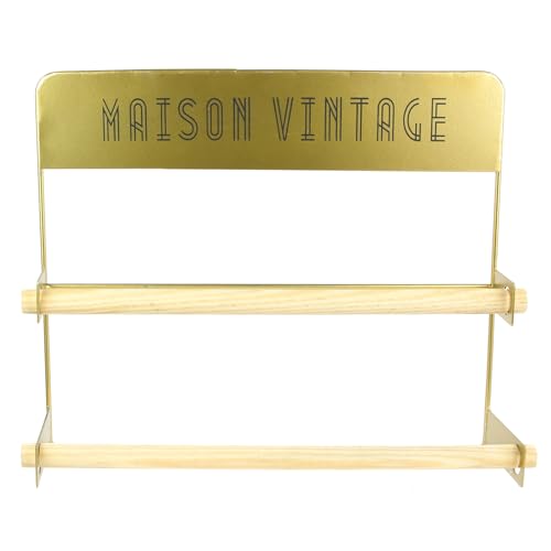 HOME DECO FACTORY - KA3039 Étagère de Crédence Filaire Murale - Design Industriel Chic en Bois et Métal - Conçu pour Cuisine - Style Vintage - Taille Unique - Couleur Dorée