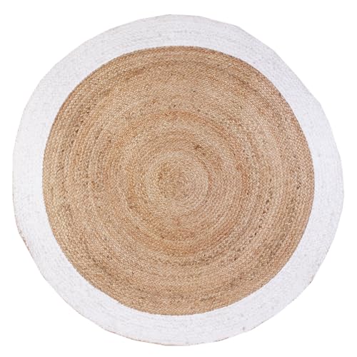 HOME DECO FACTORY - Tx9031 - Tapis Jute Bord Blanc 120 cm Deco Textile D'Interieur Tapis Decoration