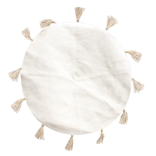 HOME DECO FACTORY - TX9033, Tapis Rond en Coton à Pompons pour Salon ou Chambre, Doux et Confortable, Conçu pour Moderniser Votre Décor, Taille 90 cm, Couleur Beige