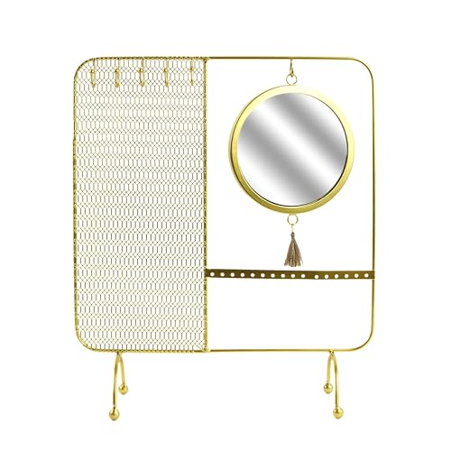 HOME DECO FACTORY - HD5074 Boîte à Bijoux avec Miroir et Câble - Design Élégant - Dimensions 35,5 x 30 cm - Couleur Doré - Conçu pour Organiser Accessoires et Décorer Intérieur