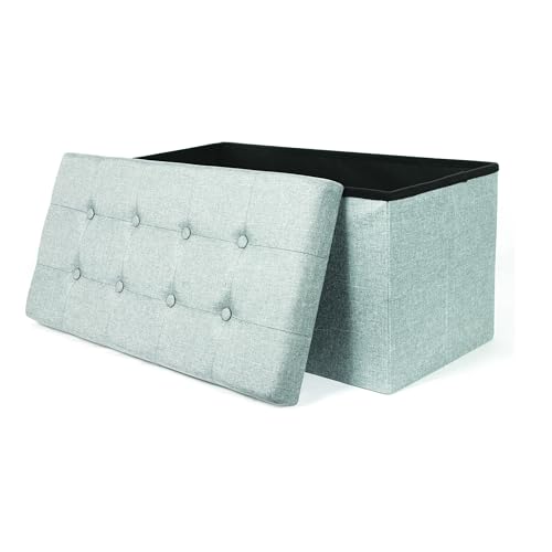 HOME DECO FACTORY - HD6323 Coffre Banc Pliable Tissu - Conçu pour Salon ou Chambre - Espace de Rangement - Toucher Doux - Dimensions 76 x 38 x 38 cm - Couleur Gris Clair