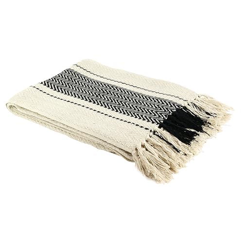 HOME DECO FACTORY - TX8003 Plaid Ethnique à Franges en Coton Ultra Doux - Motif Carreaux Tendance - pour Canapé ou Lit - Dimensions 150 x 120 cm - Couleur Écru Noir