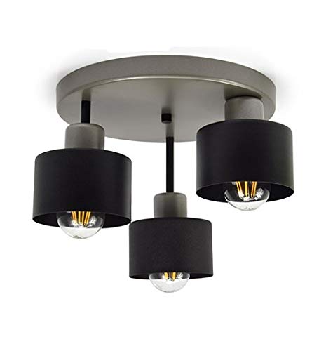 FKL DESIGN Home Deco Plafonnier | Cuivre noir | 3 flammes | Lampe 3 x E27 | 230 V | Conception rétro | 382-e3 Skandi (Gris)