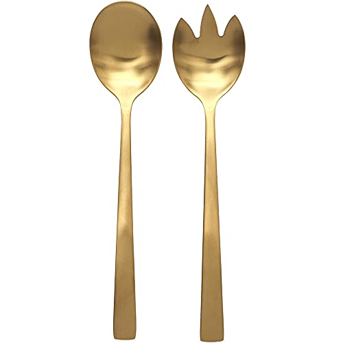 HOME DECO FACTORY - KA4664 Couverts à Salade en Acier Inoxydable Doré, Duo Élégant pour Art de la Table, Accessoire de Service Pratique, Dimensions : 23 x 4,5 x 2,1 cm