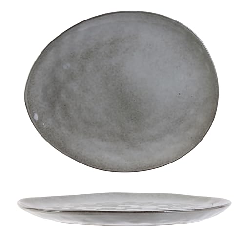 HOME DECO FACTORY - KA3750 Grande Assiette Plate en Céramique Grès - Forme de Galet - Compatible Lave-Vaisselle et Micro-Ondes - Ambiance Naturelle - Dimensions H2 x 23 x 27,5 cm - Couleur Gris