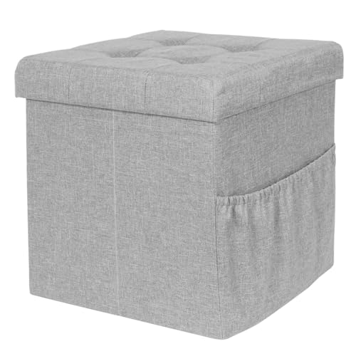 HOME DECO FACTORY The Cmhd3166 Coffre Rangement Pouf Pliable Gris M4, Lin 37,5 X 37,5 X 37,5 cm