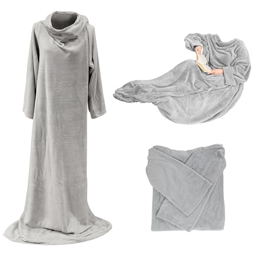 HOME DECO FACTORY - TX8017 - Plaid à Manches Confortable en Polyester Ultra Doux - Conçu pour la Maison - Grand Format 140 x 180 cm - Gris Clair - Idée Cadeau