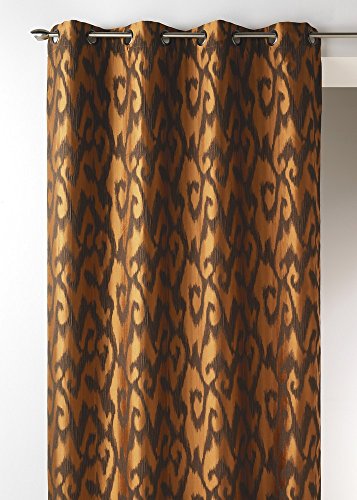 Home Maison - Rideau en Jacquard à Imprimés Rosace - Polyester - Motif Fantaisie - Prêt-à-Poser avec 8 Œillets Argentés - Adapté Salon et Chambre - 140 x 260 cm - Marron Chocolat