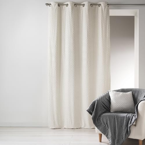 Home Maison - Rideau en Polaire à Pois en Relief - Polyester Laine - Tamisant Anti Bruit - pour Salon Chambre - 8 Œillets Ø 4 cm - Gris Ou Écru - 140 x 260 cm