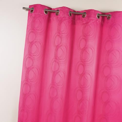 Home Maison - Rideau en Jacquard avec Imprimés Cercle - Polyester - Tamisant pour Salon et Chambre - Prêt à Poser avec Œillets - 140 x 260 cm - Fuchsia