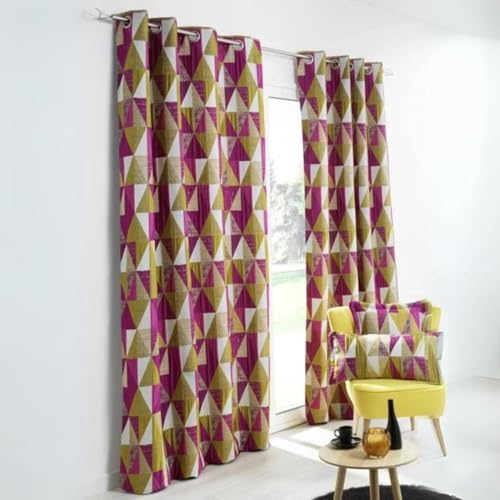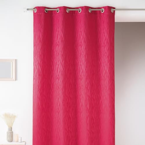 Home Maison - Rideau en Jacquard Fantaisie - Polyester 100% - Imprimés Ton sur Ton - Tamisant avec Œillets Ronds Argentés Ø 4 cm - Idéal pour Salon ou Chambre - 135 x 260 cm - Fuchsia