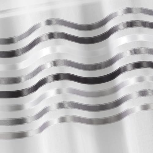 Home Maison - Rideau Droit à la Paire en Etamine Rayures Horizontales - Polyester - Prêt-à-Poser avec Ourlet Passe Tringle - pour Fenêtres de Salon et Chambre - 70 x 160 cm - Gris Clair