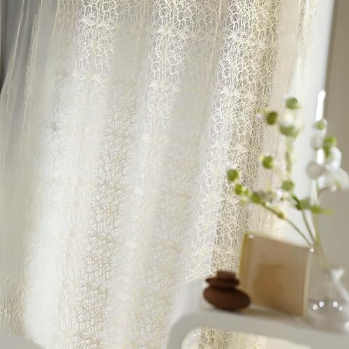 Home Maison Rideau de fenêtre brodé Motif Floral Blanc 38 x 84 cm
