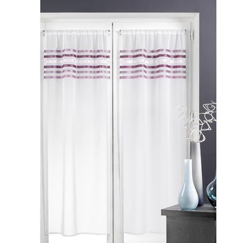 Home Maison - Rideau Droit à la Paire en Etamine Rayures Horizontales - Polyester - Prêt-à-Poser avec Ourlet Passe Tringle - pour Fenêtres de Salon et Chambre - 70 x 160 cm - Vieux Rose