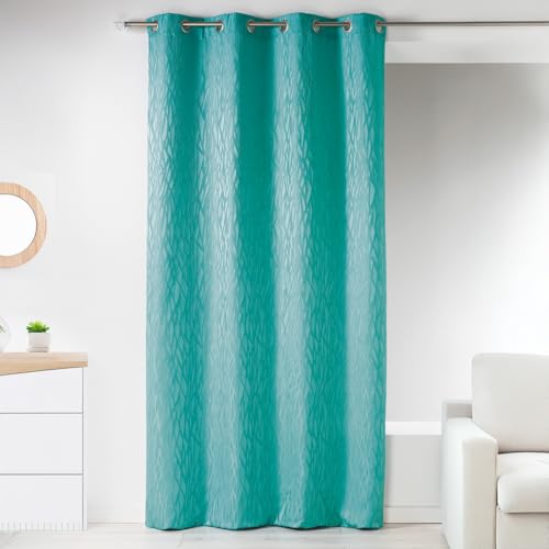 Home Maison - Rideau en Jacquard Fantaisie - Polyester 100% - Imprimés Ton sur Ton - Tamisant avec Œillets Ronds Argentés Ø 4 cm - Idéal pour Salon ou Chambre - 135 x 260 cm - Bleu Azur