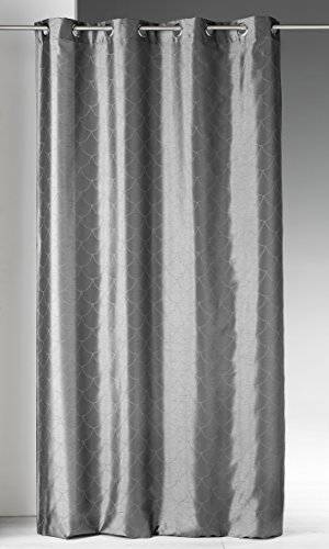 Home Maison - Rideau en Jacquard Fantaisie - Polyester 100% - Imprimés Ton sur Ton - Tamisant avec Œillets Ronds Argentés Ø 4 cm - Idéal pour Salon ou Chambre - 135 x 260 cm - Gris Anthracite