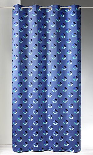 Home Maison Rideau en Jacquard à imprimés géométriques, 100% Polyester, Bleu