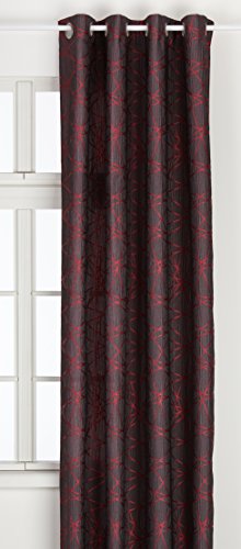 Home Maison - Rideau en Jacquard Fantaisie - Polyester 100% - Imprimés Ton sur Ton - Tamisant avec Œillets Ronds Argentés Ø 4 cm - Idéal pour Salon ou Chambre - 135 x 260 cm - Bordeaux