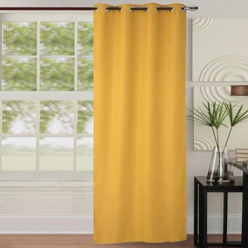 Home Maison - Rideau Occultant Uni Coloré - Polyester - Tissu 260 g/m² - 8 Œillets Ronds Argent - Isolation Thermique et Phonique - Chambre Salon Bureau - 700g - 140 x 260 cm - Jaune Moutarde