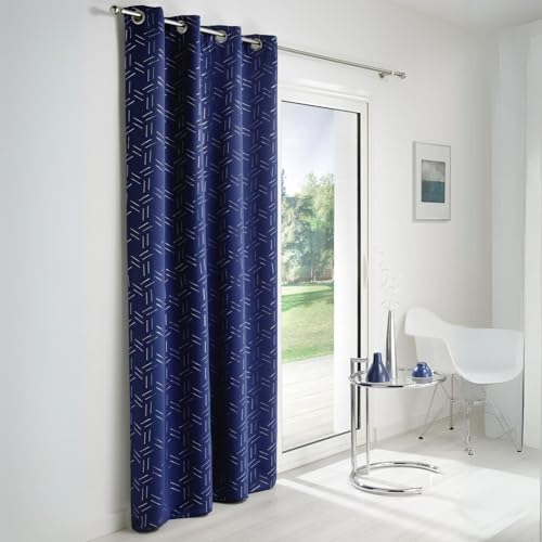 Home Maison - Rideau Obscurcissant à Motifs Argentés - 100% Polyester - 8 Œillets Ronds - Prêt à Poser pour Chambre, Salon, Bureau - Atténue Lumière - 140 x 260 cm - Bleu