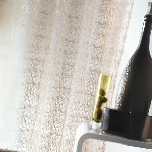 Home Maison - Rideau Ameublement en Filet Brodé - Polyester - 8 Œillets Ronds Ø 4 cm - Tamisants pour Salon Chambre - Finition Ourlet - 150 x 260 cm - Taupe