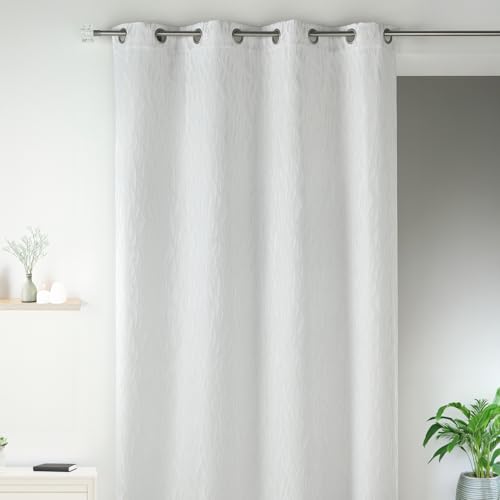 Home Maison - Rideau en Jacquard Fantaisie - Polyester 100% - Imprimés Ton sur Ton - Tamisant avec Œillets Ronds Argentés Ø 4 cm - Idéal pour Salon ou Chambre - 135 x 260 cm - Blanc