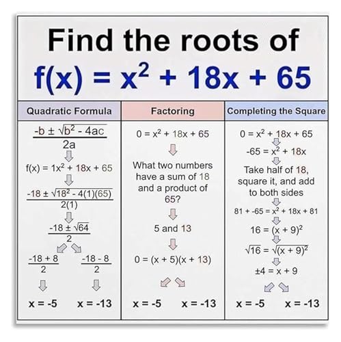 Math Classroom Decor Quadratic Formula Algebra Poster with Equation Solutions Educational Wall-Art for School and Home(Unframed,08x12inch(20x30cm))