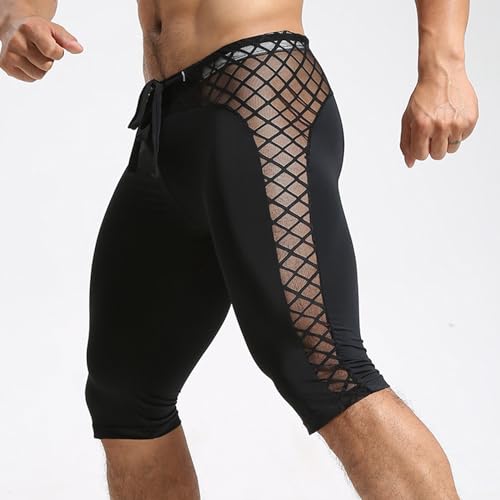 Gdqzzeaiix Short De Bain Homme,Pantalon de Sport Moulant en Nylon et Soie glacée pour Hommes Couleur Unie Bas Sexy Pantalon Central
