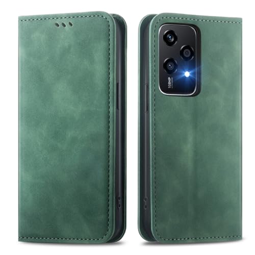 MOJIA Coque pour Honor 200 Lite 5G, Étui Portefeuille Folio en Cuir PU [Fermeture Magnétique], Coque à Intérieure en TPU, Support pour Cartes Housse. Vert
