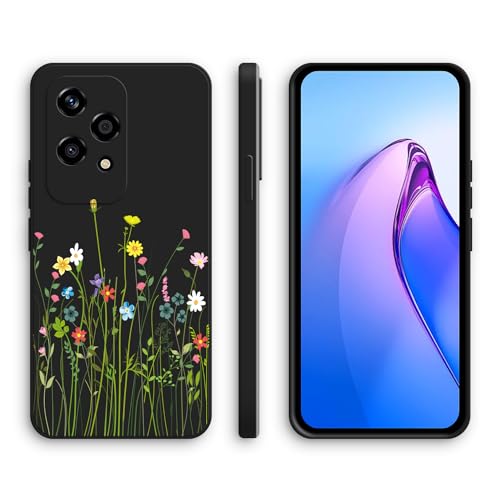 XINYEXIN Coque pour Honor 200 Lite 5G, Coque Silicone Souple avec Motif Mignon, Étui Antichoc à Bord Droit - Flowers, Black