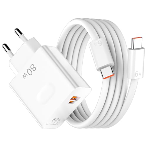 80W Chargeur Rapide pour Honor 400 2 Ports PD Chargeur Secteur Charge Rapide et 6A Câble USB C 1m pour Honor 200 400 Lite/Smart Magic7 6 Lite 6 Pro V5 V3 V2 X6b X6c X8c X9c X9d 90 70 Pad 10 9 X9a X8a