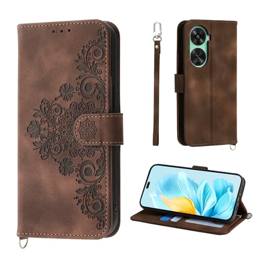 Auslbin Coque pour Honor 200 Lite 5G 6.7", 5 Cartes Honor 200 Lite 5G étui de Protection en Cuir PU de Fleur Style Vintage pour Housse, Brun