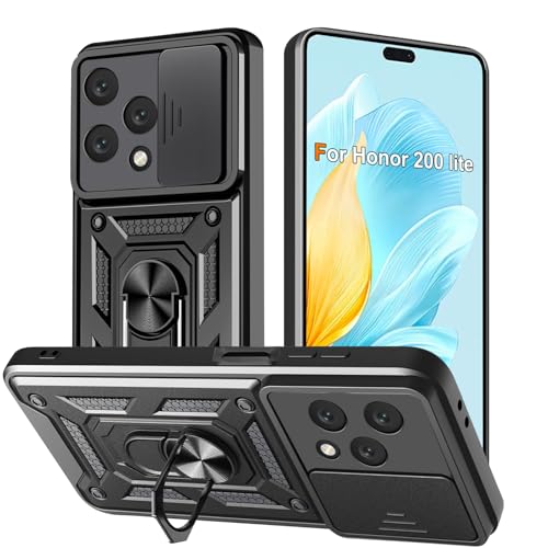 Yutwo Coque pour Honor 200 Lite - Étui de Protection Antichoc avec Support à Bague et Protection de la Caméra - Noir