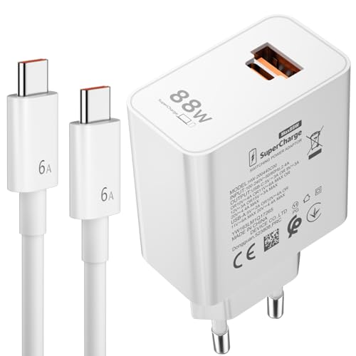 88W Supercharge Chargeur Rapide pour Honor 200 400 Lite Magic6 Lite 2 Ports PD Chargeur Rapide & 6A Câble USB C 1m Supercharge Chargeur pour Honor Magic7 6 Lite X5c X6b X7b X8c 90 Pura 70 Pad X8a X9 9