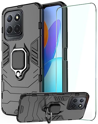 DERHAN Coque pour Honor 70 Lite/Honor X6 / Honor X8 5G, Étuis Antichoc avec Anneau +Verre Trempé, Housse de Protection Anti-Vibration, Silicone TPU Case Cover Bumper Protection D'écran - Noir