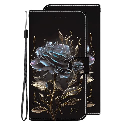 SATURCASE Coque pour Huawei Y6 2018 / Honor 7A, Unique Coloré PU Cuir Magnétique Flip Portefeuille Support Porte-Carte Protecteur Housse Étui avec Dragonne pour Huawei Y6 2018 / Honor 7A (XC-Noir)