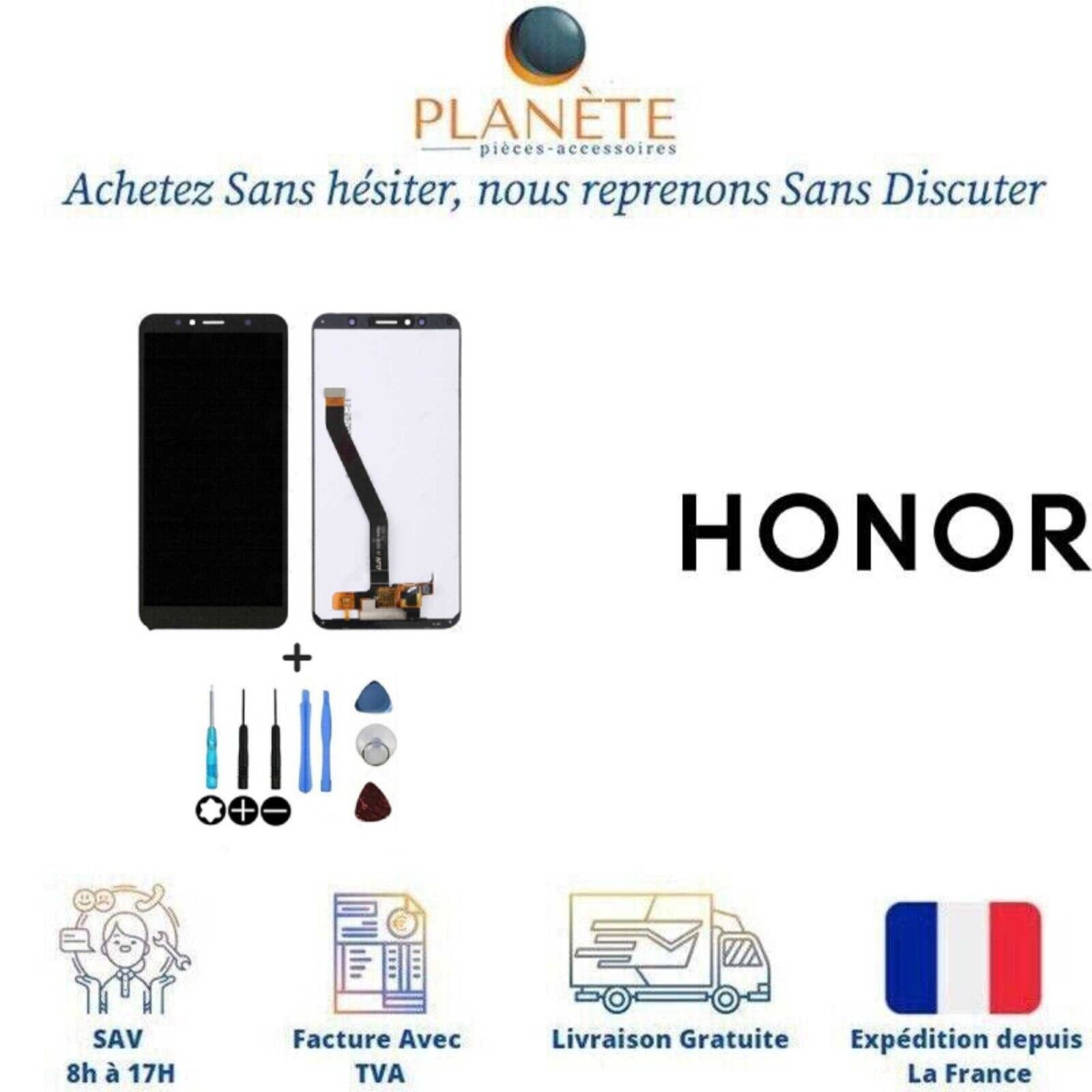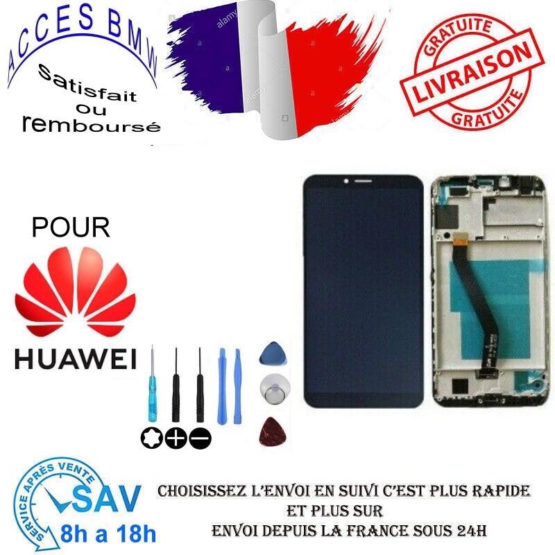 ECRAN LCD + VITRE TACTILE + FRAME pour HUAWEI HONOR 7A NOIR + outils