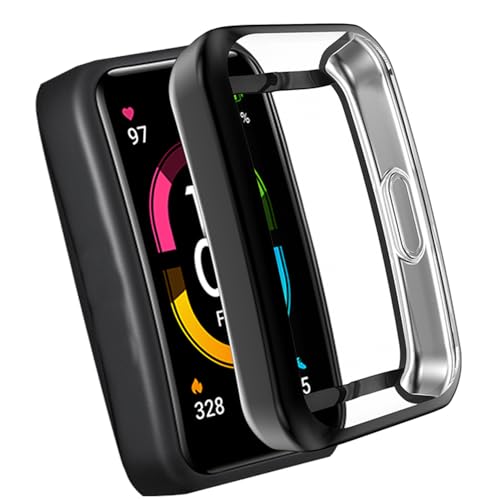 ivoler 3 Pièces Protection Écran Coque pour Huawei Band 7 / Band 6 / Honor Band 7 / Band 6, Étui de Protecteur Complète en TPU Souple Mince Antichoc Anti-Rayures Housse (2 Transparent + 1 Noir)