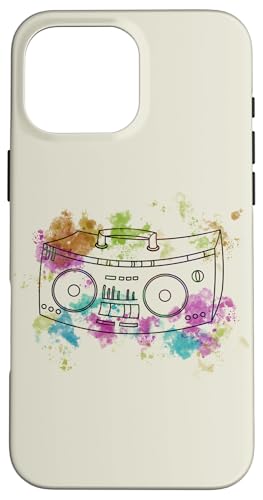 Ghetto Blaster Boom Box coloré années 70, 80, 90, Y2K Coque pour iPhone 16 Pro Max