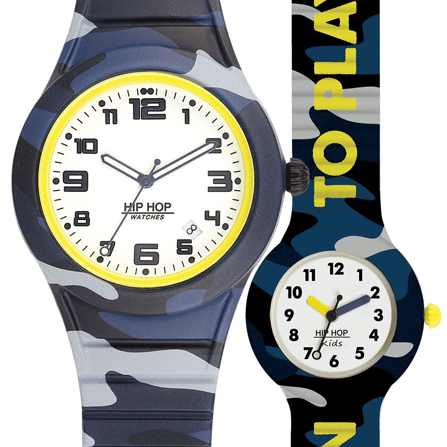 Box Set Montre HIP HOP LITTLE ME HK0047 Bleu 42mm 28mm Camouflage Militaire