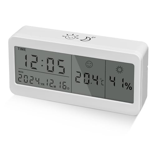 LURICO Réveil Numérique, Reveil Matin a Piles avec Grand écran LCD, Reveil Digital pour Voyage Chambre Bureau, Horloge Numérique avec Date, Température, Humidité, Snooze, Rétroéclairage (Blanc)